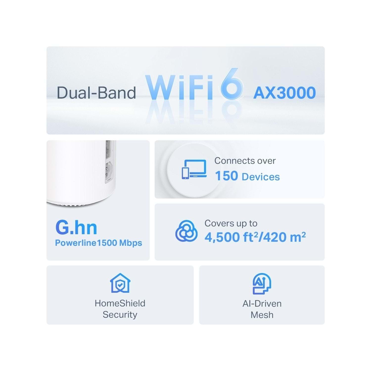 TP-Link Deco PX50 (2 Adet) AX3000+G1500 Whole Home Powerline Mesh Wi-Fi 6 Sistemi DECO-PX50-2P